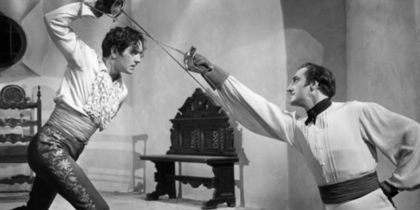 Junto con un personaje principal que siente que salió de una película de superhéroes, La marca de Zorrola película también ofrece un final lleno de acción que se enorgullece del género de superhéroes. Todo comienza con una emocionante pelea de espadas uno a uno entre Diego y el Deadly Esteban (Basil Rathbone).