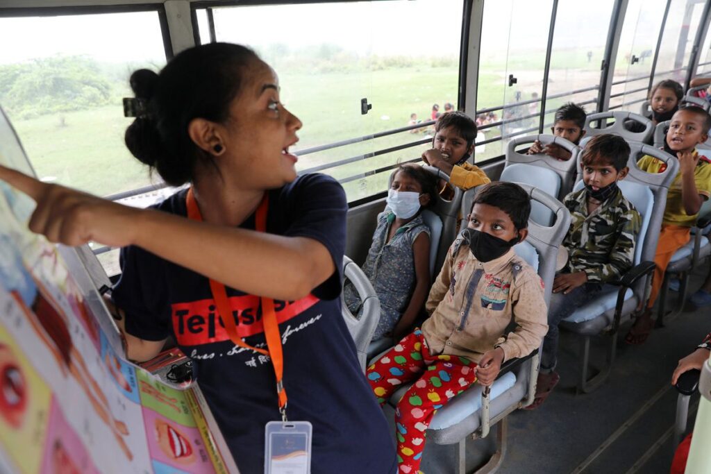 TejasAsia ha estado operando con las escuelas móviles desde hace algunos años, explica Ebna Edwin, coordinadora de proyectos de la ONG, pero sus servicios se han vuelto esenciales desde el inicio de la pandemia.