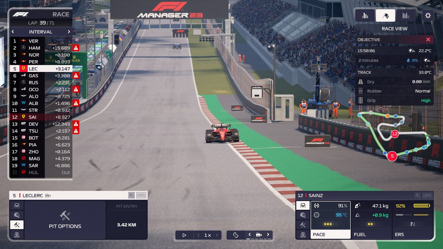Dicho esto, hay algunos problemas menores que impiden Gerente de F1 2023 de ser tan inmersivo como realmente podría serlo en un sentido más amplio. Todavía hay algunos errores y fallas que deben corregirse, sacando al jugador del momento, y también hay algunos elementos de diseño que tal vez necesiten ser solucionados. Un ejemplo más pequeño es el uso del diálogo del mundo real entre el equipo y el piloto, ya que aunque la autenticidad de esto es encomiable, parece bastante forzado cuando la situación no coincide del todo con la cita del conductor.