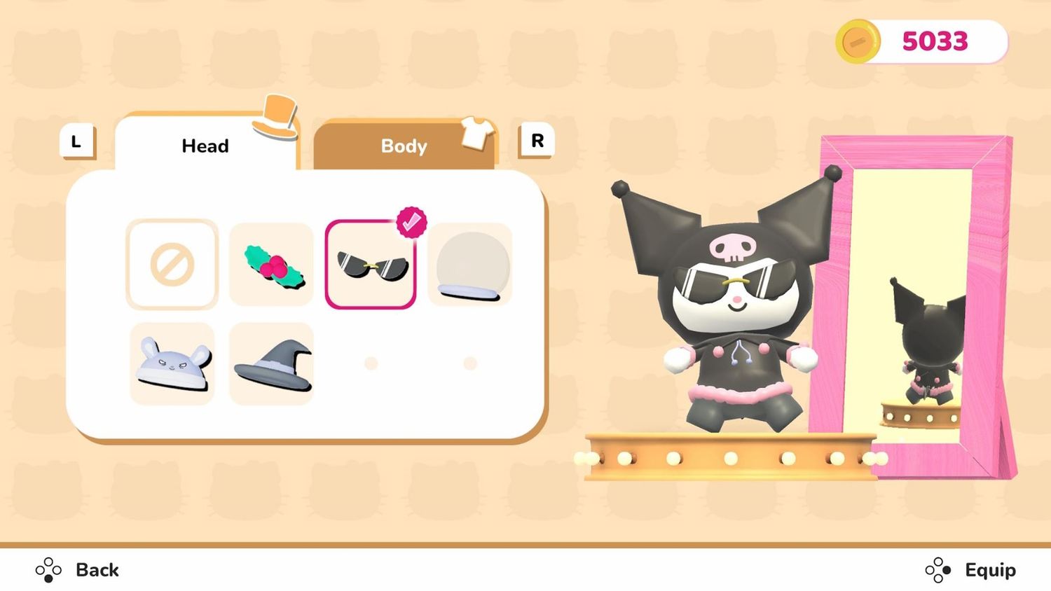 Mientras los jugadores bailan Desfile de la felicidad de Hello Kitty y sus amigos niveles y desafíos especiales, acumulan monedas que pueden usarse para comprar opciones de ropa divertidas en el juego para vestir a sus personajes. Los adorables sombreros y gafas de sol no solo aumentan la diversión, sino que durante los niveles hay sesiones de fotos a mitad del desfile que actúan como un minijuego y estos elementos cosméticos pueden hacer que la experiencia de la sesión de fotos sea un verdadero cambio de ritmo similar al de una diva que puede hacer que los jugadores y espectadores Reír en voz alta.