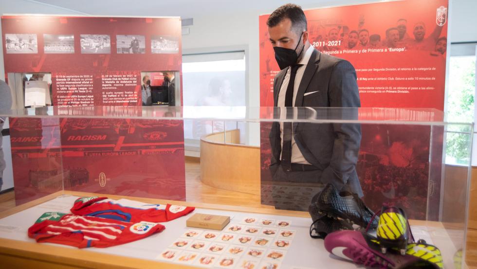 En la inauguración de la exposición, que es uno de los eventos principales previstos este año con motivo del noventa aniversario del club, estuvieron presentes, entre otros, el entrenador del Granada, Diego Martínez, y el consejero de la entidad Pepe Macanás.