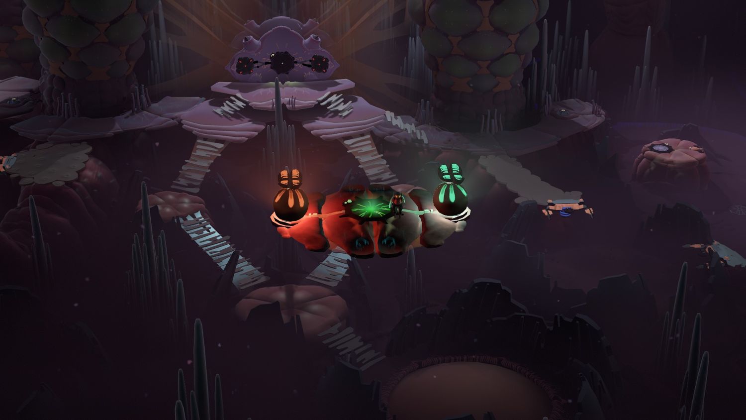 También hay un enfoque pragmático para diseñar cada uno de los diferentes mundos. Cada orbe tiene su propio tono, como un pantano verde anegado, un desierto naranja o una colmena púrpura orgánica, y esto ayuda al jugador a ubicar rápidamente exactamente dónde se encuentra y cuáles son sus próximos pasos. Como tal, se dedica muy poco tiempo barajando los mundos, buscando el siguiente paso.