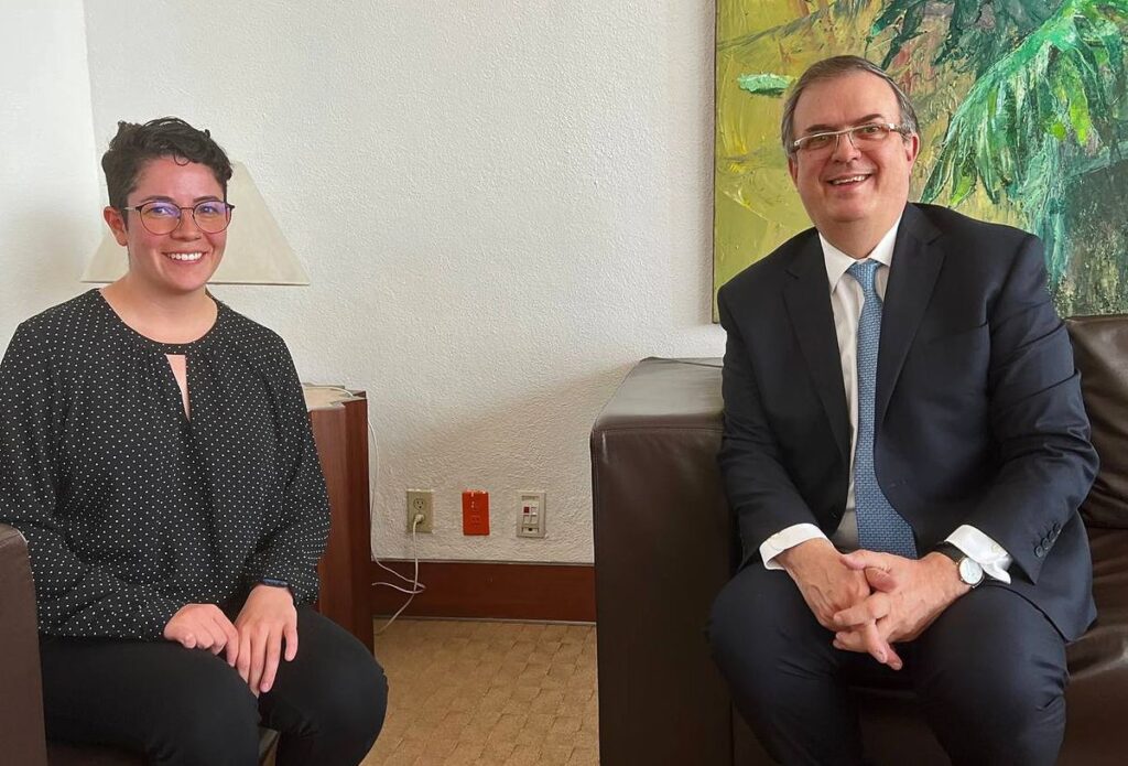 Paola Schietekat y el canciller mexicano, Marcelo Ebrard, en Ciudad de México, este viernes.Secretaría de Relaciones Exteriores