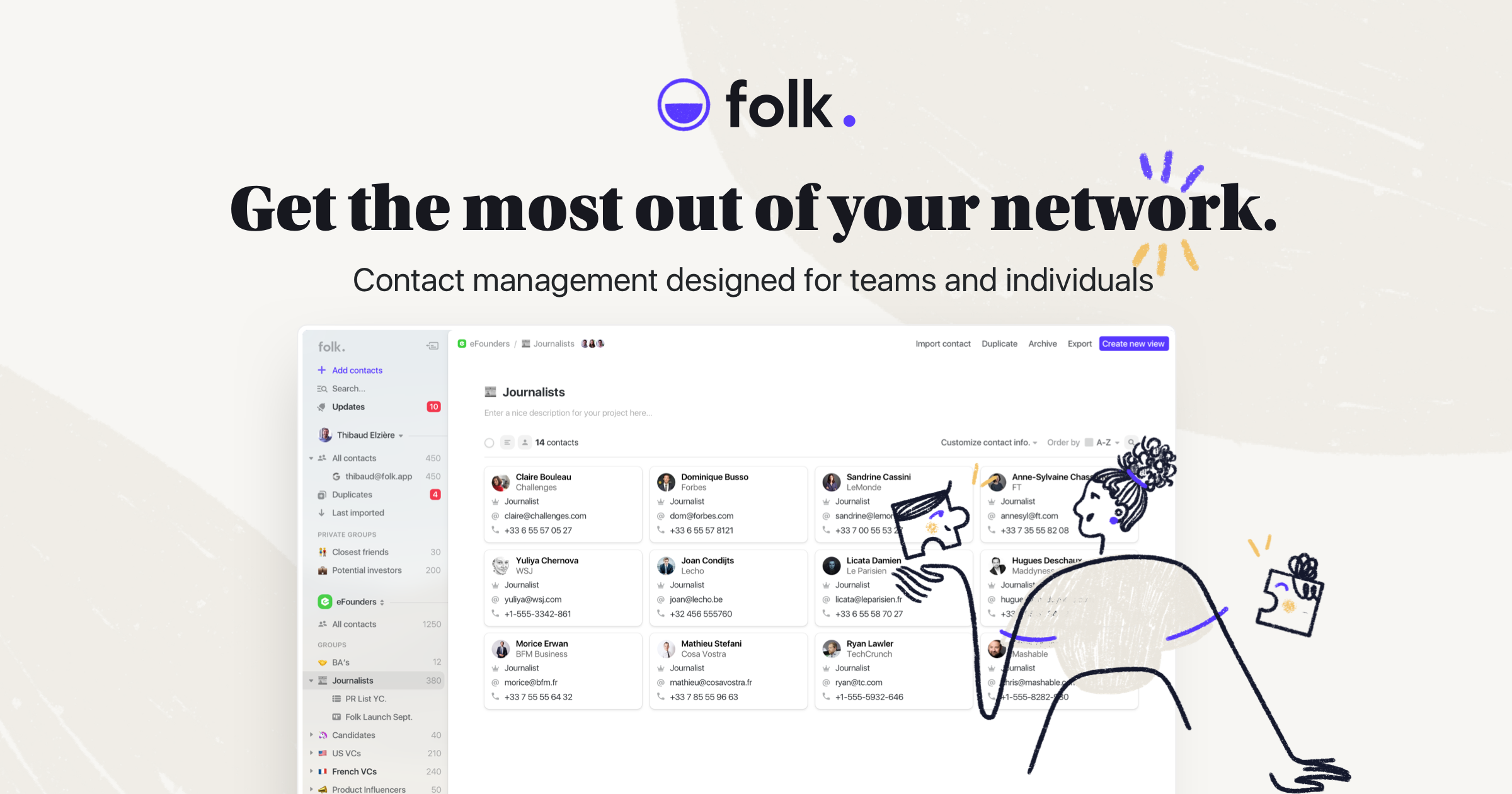 Hablando de Airtable, Folk es fácil de describir. ¿Qué pasaría si Salesforce y Airtable tuvieran un bebé? Se parecería más o menos a Folk.