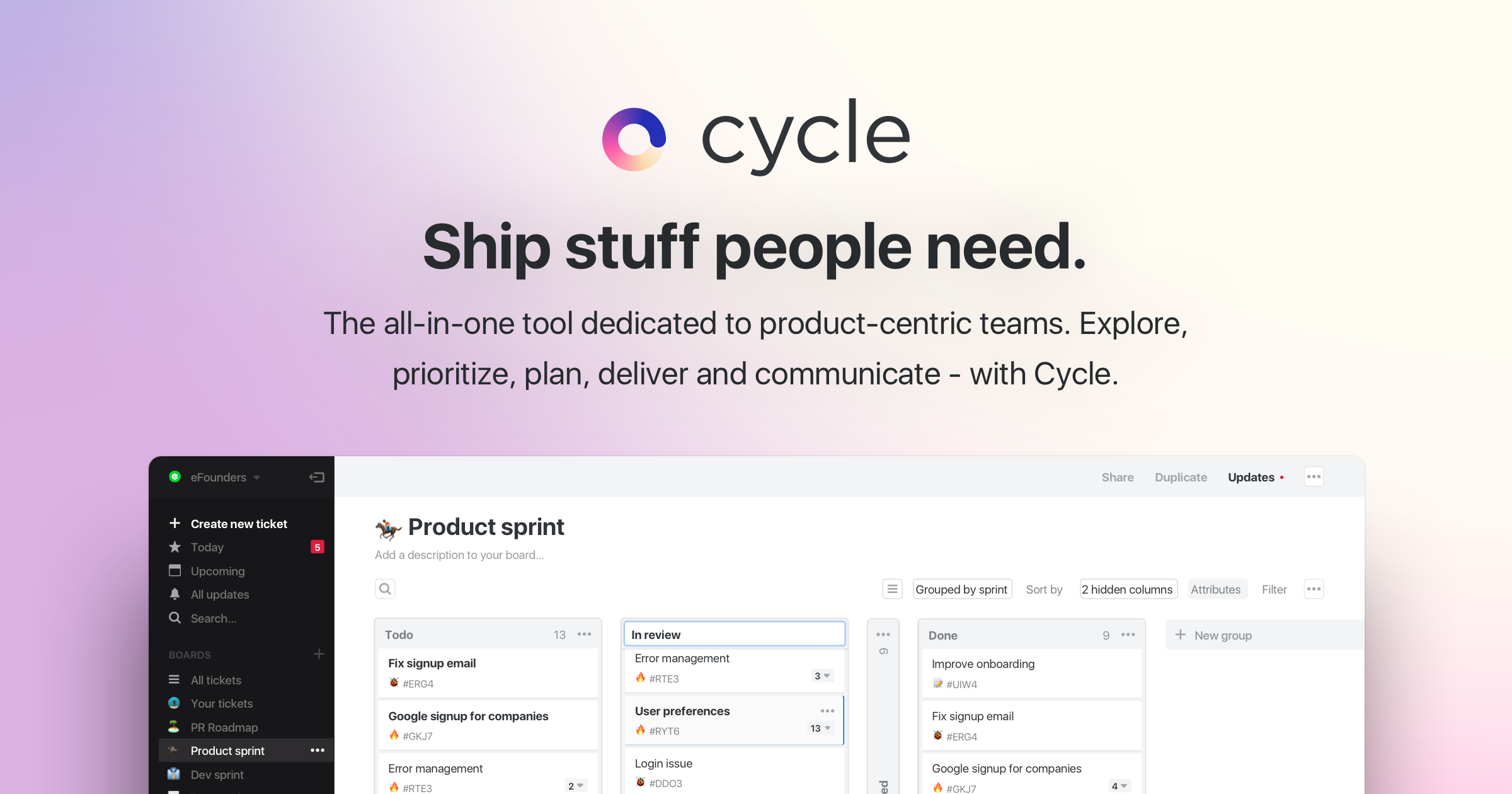 Muchas startups usan múltiples herramientas para todas esas tareas. Y a veces, las herramientas que estaban usando no escalan bien. Ciclo se integrará con GitHub, Figma y Zendesk para que pueda manejar errores, mejoras y funciones de manera más eficiente.
