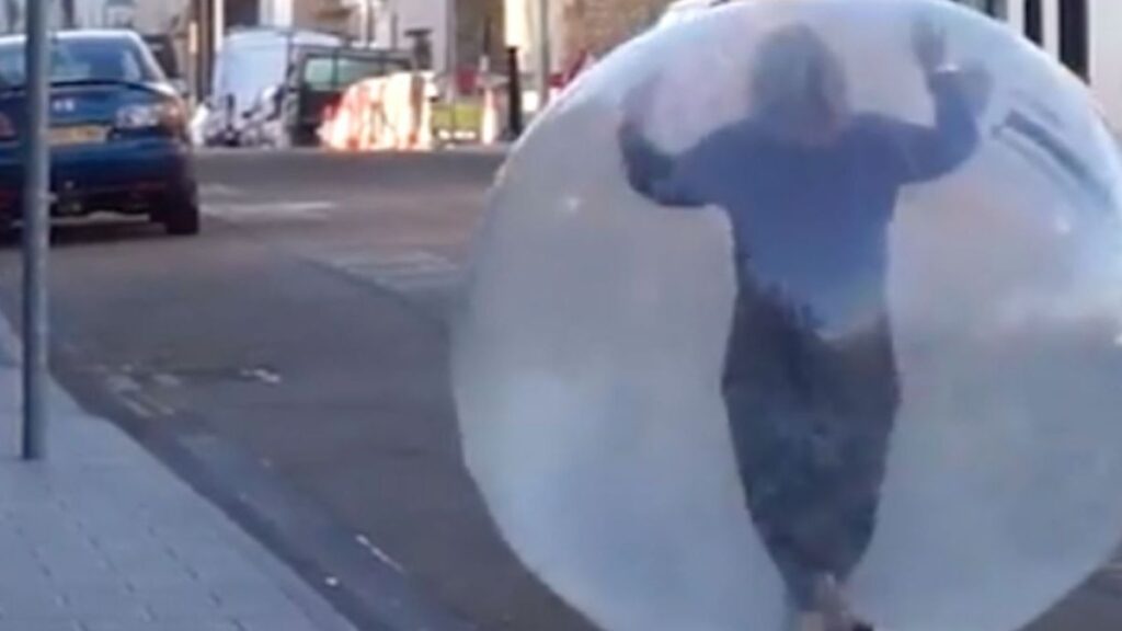 La mujer entró en el establecimiento, situado en la ciudad británica de Kent, rodando en el interior de la burbuja. Como no podía ser de otra manera, tanto los empleados como el resto de clientes se quedaron totalmente desconcertados. La mujer iba acompañada de un hombre, que parece que se trata de su cuidador, quien se ocupaba de recoger los alimentos y productos para ella.