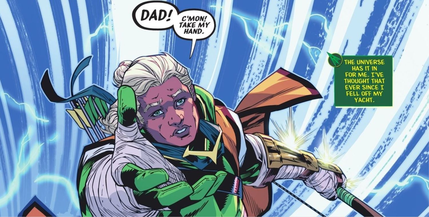 “/> Mientras el resto de la Liga de la Justicia regresaba, Green Arrow se perdió durante Crisis oscura en tierras infinitas. Mientras su familia luchaba por encontrarlo, Oliver viajaba por todo el tiempo y el espacio. Más tarde le reveló a Lian Harper que el Equipo Arrow no podía reunirse porque si lo hacían, provocarían uno de los mayores desastres que dejaría la Tierra devastada. Pero eso no impidió que Black Canary o Arsenal, que lucharon como el infierno para recuperar a sus seres queridos, hicieran tratos y se metieran en peleas con personajes como Peacemaker o Cheshire.