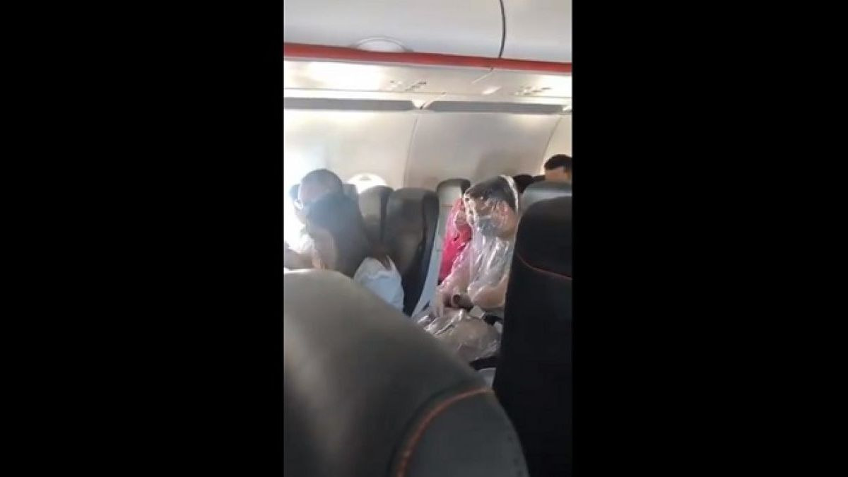 El avión volaba desde Sidney a la isla de Hamilton, ambos lugares en Australia. Fue otra pasajera la que captó el momento y lo compartió en su cuenta oficial de Twitter. En la imagen podemos observar a la pareja completamente envuelta en plástico. Además, llevaban guantes quirúrgicos y mascarillas. Todo con el objetivo de evitar el más mínimo contacto con el exterior.