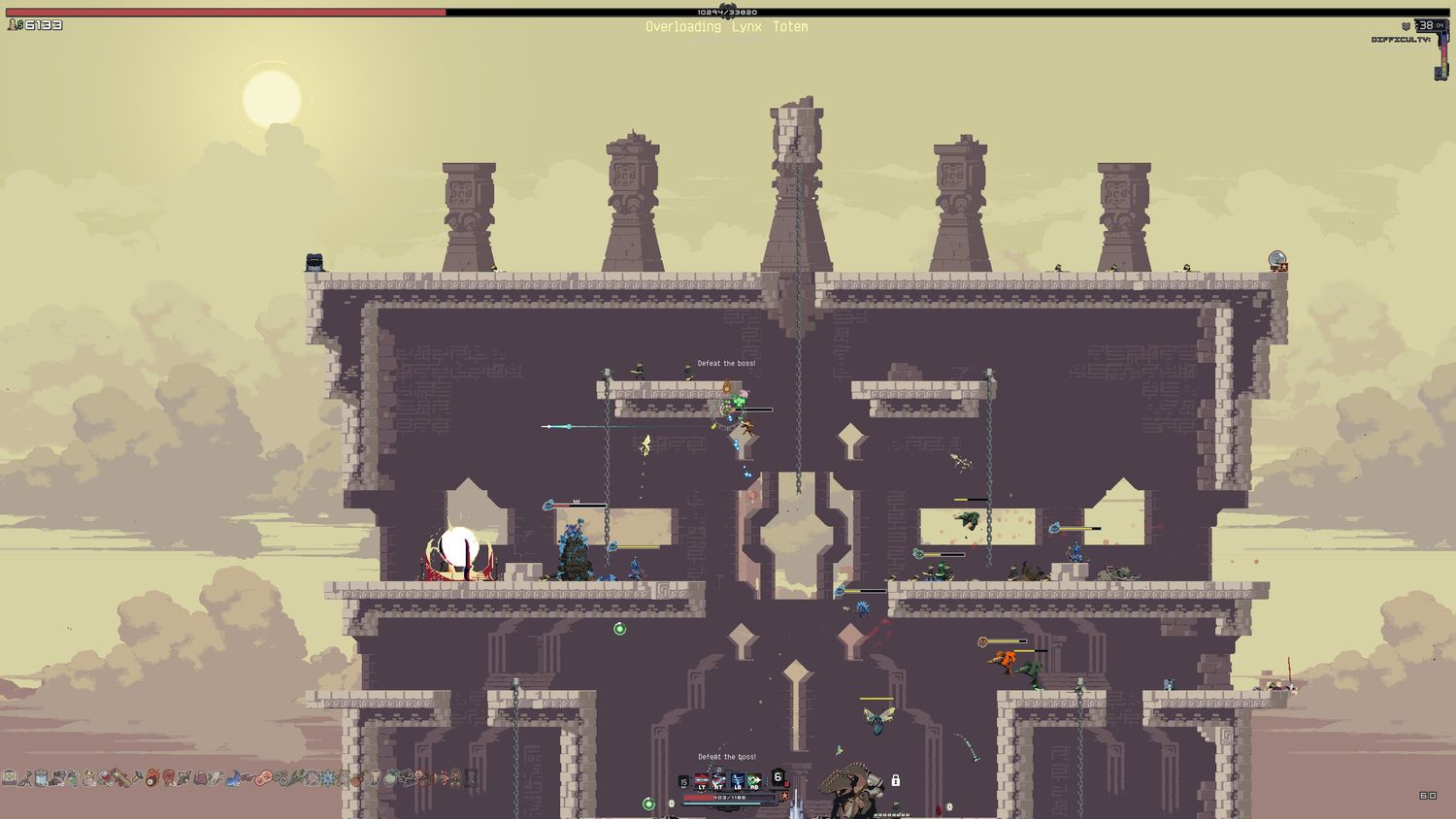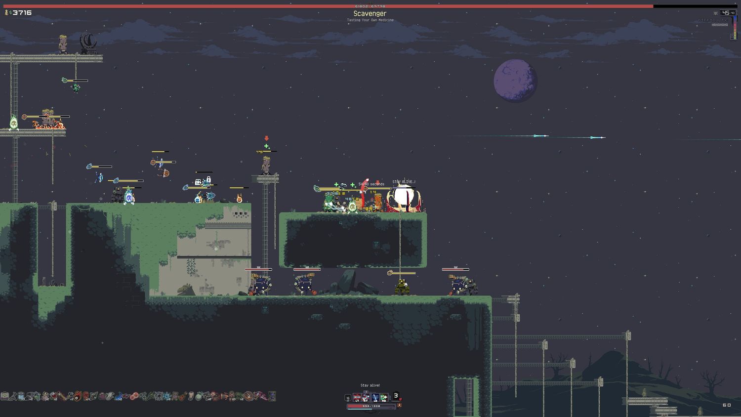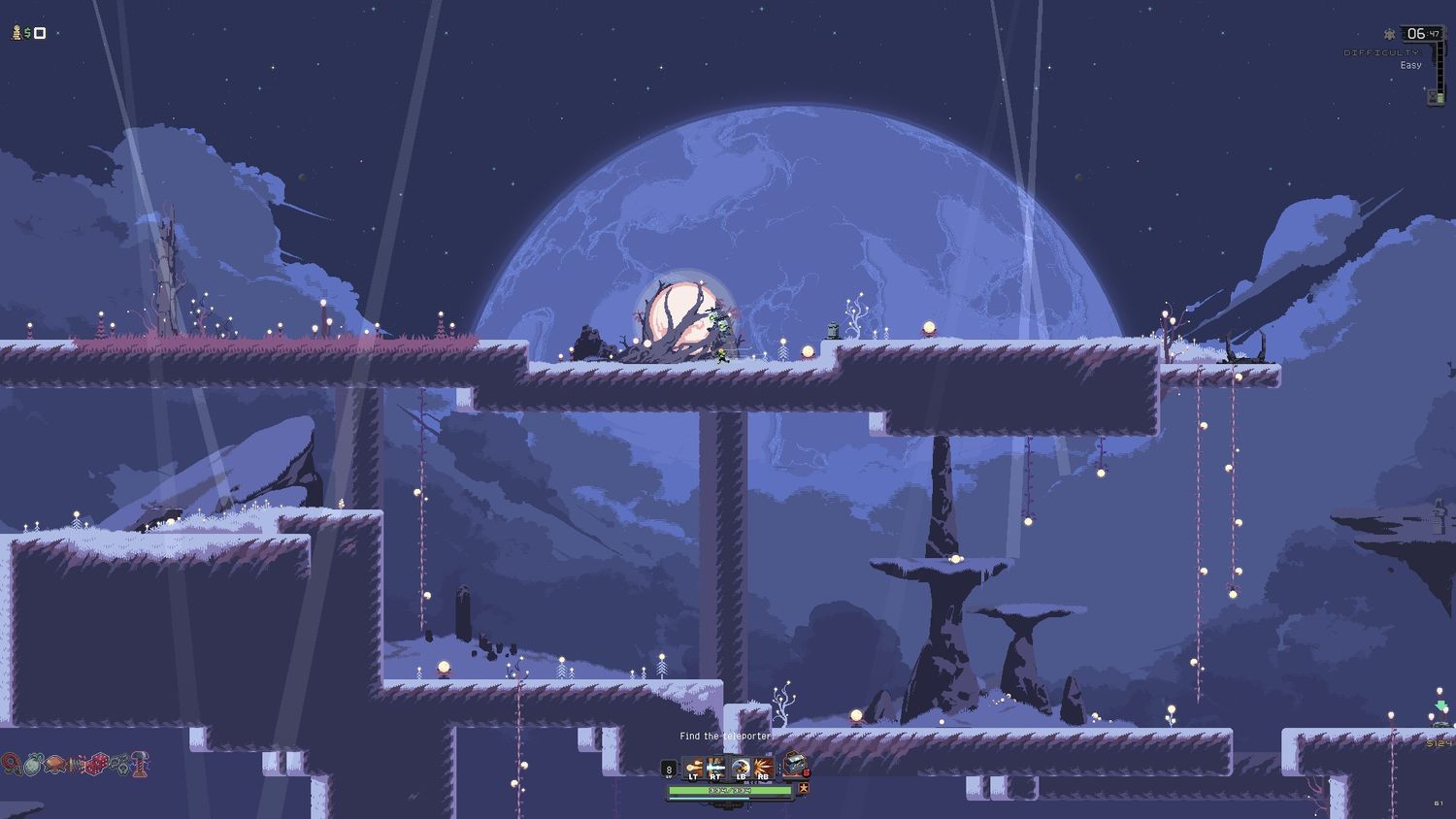 Para cualquiera que no haya jugado ninguna de las entradas principales de la serie, Riesgo de lluvia es un juego de plataformas y acción roguelite con énfasis en la adquisición de elementos y la sinergia, la exploración y el combate implacable contra hordas enemigas en constante aumento. Es un juego que nunca se ha parecido a ningún otro roguelite, en parte debido a su entorno y tono inusuales, su despiadada mecánica de desafío basada en el tiempo y su profundidad de contenido. La contagiosamente espeluznante banda sonora de Chris Christodoulou también tiene la culpa (ligeramente remodelada y renovada para esta nueva versión) o cómo las diminutas proporciones del personaje del jugador amplifican la sombría sensación de soledad, este pequeño soldado abandonado a merced del vasto y amenazante paisaje alienígena. .