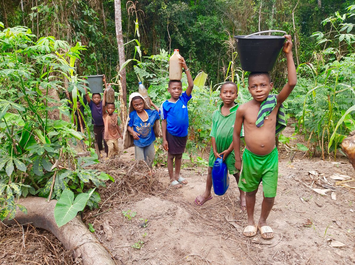 Pero en Mimbril y los pueblos vecinos, todo eso se vio interrumpido cuando la zona quedó aislada. El retroceso es evidente. A las cuatro de la tarde, un grupo de adolescentes llega a la aldea después de haber pasado el día en la selva recogiendo mangos salvajes. Se nota que los chicos están bebidos cuando saludan. Acarrean con ellos una garrafa llena de matango, vino de palma recién recolectado, que beben tranquilamente de la taza de plástico sobre la que lo vierten y pasan por turnos. Este es su día a día. Una vida sin esperanzas.