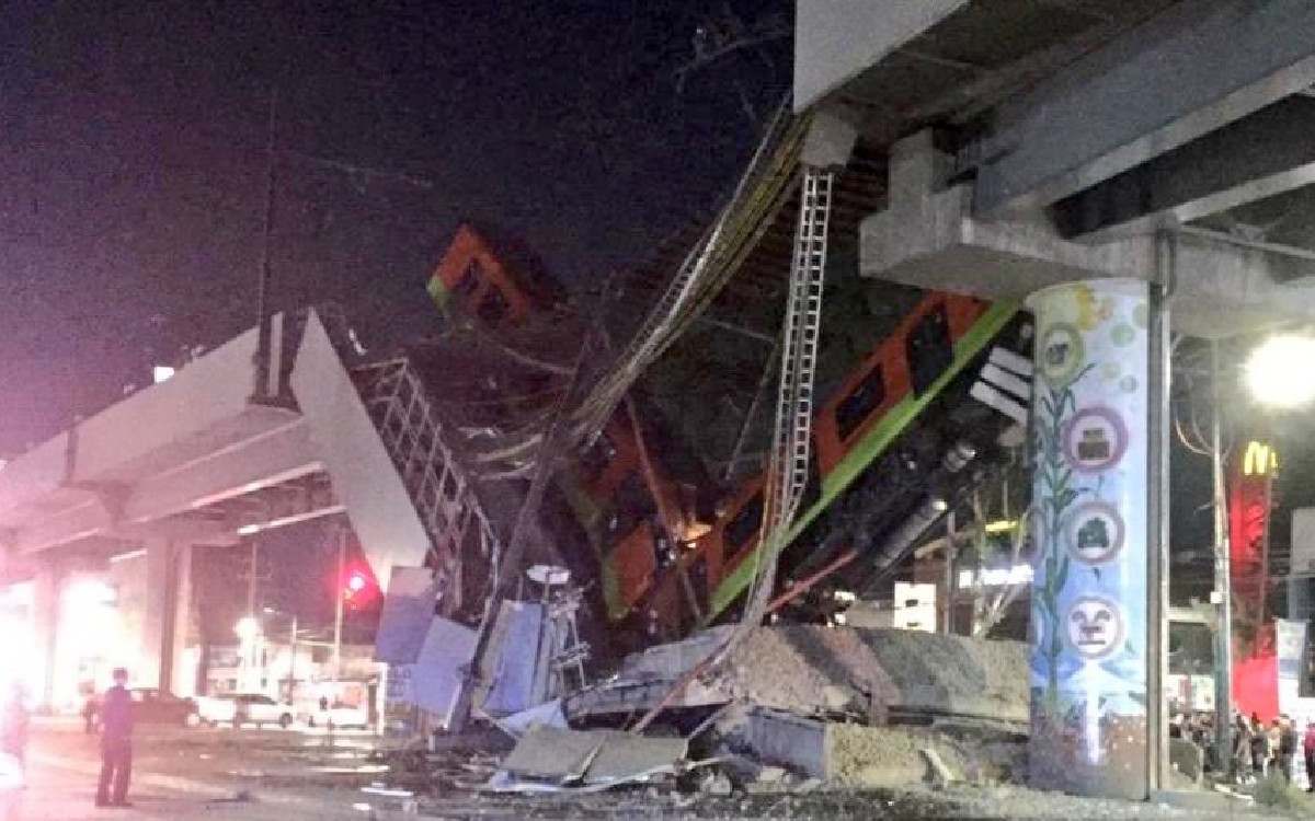 A las 22:25 horas de este lunes, un puente de la Línea 12 del Metro de la Ciudad de México en la estación Olivos en la alcaldía Tláhuac.