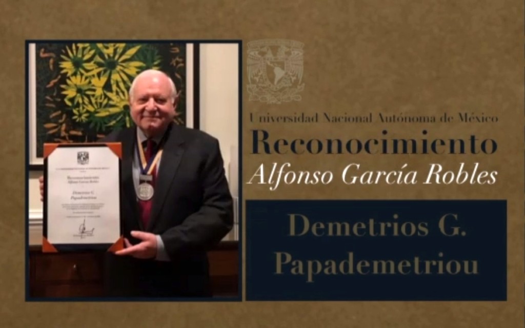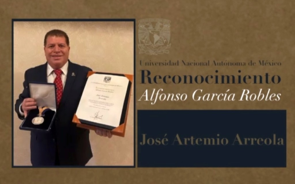 En el acto en el que participaron también el coordinador de Proyectos Académicos de la UNAM, Jaime Martuscelli Quintana, y el coordinador del Programa para el Apoyo de los Mexicanos en el Extranjero, Jorge Madrazo Cuéllar; se proyectó un video con la semblanza de los galardonados, y otro más rememorando la vida y obra de Alfonso García Robles, premio Nobel de la Paz 1982, quien trabajó en favor del desarme nuclear.