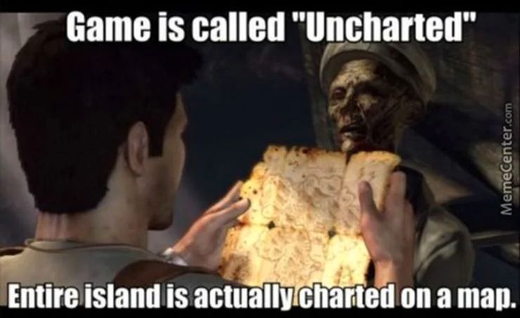 Uno de los memes lógicos más reveladores destaca las inconsistencias en las habilidades superiores de exploración de Drake. En la franquicia, Drake se presenta como un explorador único en su clase que usa experiencia avanzada, recursos históricos, destreza física (parkour) y contactos geográficos para encontrar los lugares más clandestinos y exóticos, muchos de los cuales deberían usarse en el Inexplorado película.