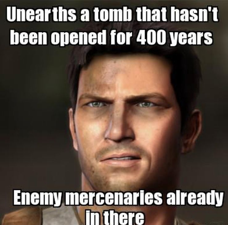El meme resume cómo la naturaleza flagrantemente irreal e ilógica de las desventuras de Drake y cómo su conjunto de habilidades parece completamente intrascendente para encontrar y abrir reliquias perdidas antes que nadie. El meme también se burla del aspecto aparentemente sobrenatural de los villanos longevos pero fáciles de matar del juego.
