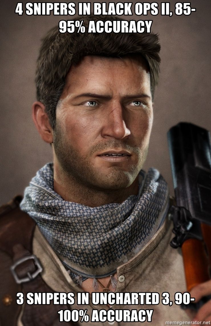 En un meme que encapsula perfectamente la molestia, Inexplorado se compara con Call of Duty Black Ops, un juego diseñado en torno a los francotiradores militares y los disparos profesionales de largo alcance. Sin embargo, en Inexplorado, los francotiradores mucho menos hábiles y entrenados pueden atacar con una precisión superior.
