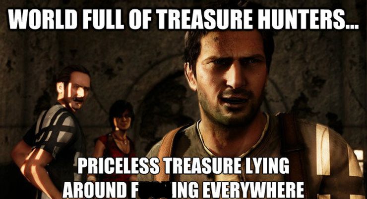 A pesar de todos los esfuerzos minuciosos y sangrientos que Drake hace para encontrar y asegurar tesoros ocultos de valor incalculable que quedan en todo el mundo, parece que se ha hecho muy poco esfuerzo para proteger el alijo de riquezas de la franquicia. Un meme habla de lo absurdo de la cantidad de cazadores de tesoros en comparación con la falta de seguridad fortificada.