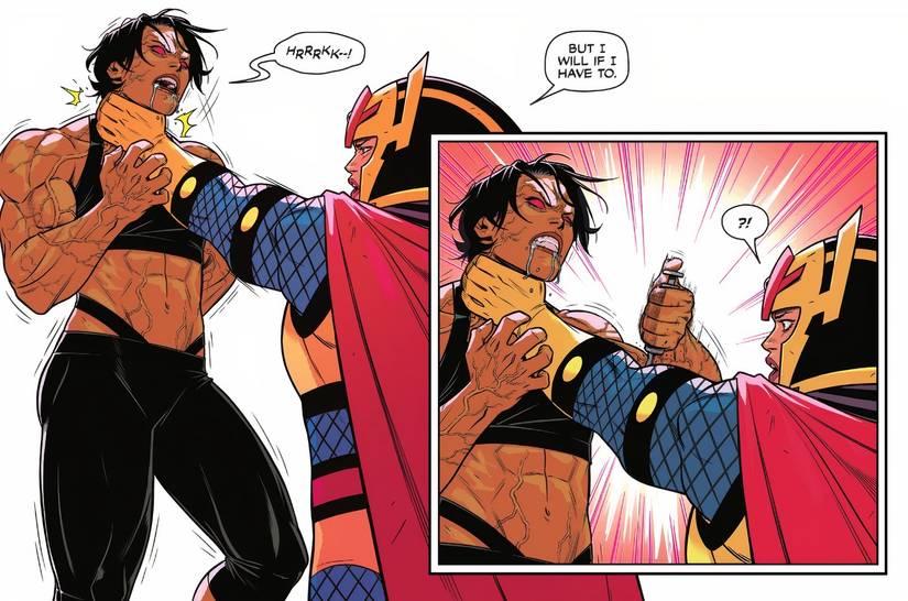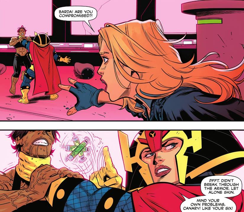 Big Barda parece estar comprometida, pero en un giro sorprendente, no se ve afectada por la inyección de aguja de Batgirl. Al igual que Superman, Barda tiene una mayor durabilidad que la hace inmune a muchos ataques físicos.solidificando a esta heroína de la Liga de la Justicia como una “Mujer de Acero” por derecho propio.