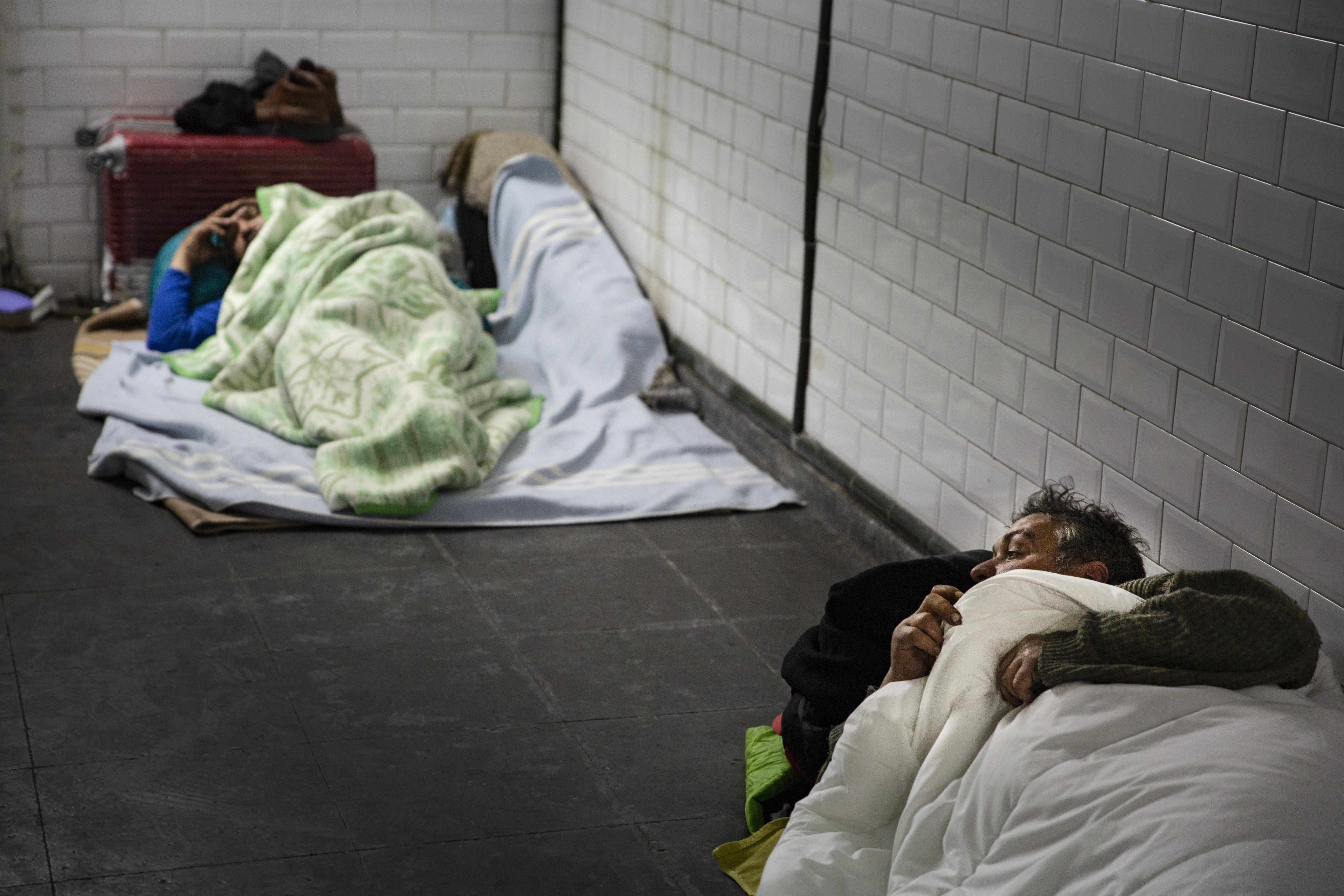 Hay gente que toma fotos de ciudades sin gente. Esperan a que nadie pase por delante de su objetivo. No soy yo. En la confluencia de Gran Vía con Alcalá, veo la casa de un hombre. Ropa. Cartones. Detrás, el destello de las joyerías. Detecto la interrupción del clímax paisajístico. Lo que los servicios de limpieza podrían retirar. El hombre luce barba de protagonista de novela rusa —escribir algo así es una estilización poco ética—. El hombre, con su figura y miseria, me lleva a imaginar muchos pasados posibles y casi un único destino. Me arrogo el derecho a la vivisección y fantaseo sobre sus orígenes, degradaciones, aprendizajes. Sobre si alguien lo quiso mucho o si nunca mereció el amor. Trabajos y antiguas cartillas de ahorro. Podría ser un director de cine experimentando la pobreza como en Los viajes de Sullivan: la imaginación es libre, sobre todo cuando es una imaginación leída —de nuevo entiendo el clasismo y la utopía de esta frase—. El hombre mea en un bidón de plástico. No moja las cristaleras de las joyerías. No genera mal olor. No recoge su orina para evaluar la eficiencia depuradora de sus riñones. El hombre que mea en su bidón se comporta más cívicamente que algunos pagadores de impuestos que se quejan de la proximidad de una narcosala. Vuelvo a mirar al hombre: quizá sería mejor que marcase el territorio con pis, rompiera el escaparate, me insultara cuando lo observo orinando. El comportamiento de este hombre es el de un hombre limpio con conciencia de no vivir solo, pese a su marginación y soledad. Un hombre respetuoso que aprieta el tapón de rosca del bidón. Cuando se vive en la calle, existen tantas razones para despreciar a los demás, que hay algo profundamente moral en el gesto de no derramar ni una gota. Primero, decido no fotografiarlo para no hacer de él algo anecdótico; después, prefiero dar testimonio realista de su existencia contra los marchantes del colorín del pobre, moneditas metidas solo una vez dentro de la hucha, la ley de la selva, pensamientos de Carolina de Mónaco, bailes de la Rosa de Francia, simulacros, sepulturas y otras mistificaciones urbanas.