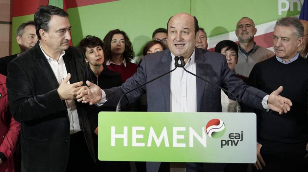 Los nacionalistas vascos creen que se abre un escenario favorable en el que tanto el PNV como EH Bildu van a seguir prestando su apoyo a Pedro Sánchez. El líder abertzale, Arnaldo Otegi, sigue apostando por desvincular sus alianzas estratégicas “del esencialismo” independentista, como explica en la ponencia política aprobada en el reciente congreso que le ha reelegido como coordinador para otros cuatro años. El PNV no descarta incluso acuerdos con EH Bildu en el escenario vasco. Aunque complicados, no los ven imposibles habida cuenta del nuevo ciclo de la izquierda abertzale que, en los últimos Presupuestos españoles, ha dado luz verde a partidas para el Tren de Alta Velocidad, el Ejército, o la Guardia Civil. Un viraje impensable hace solo dos años.