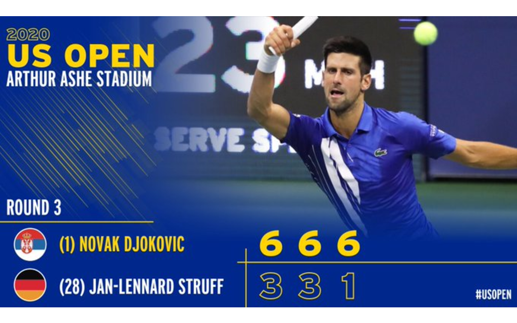 El tenista serbio Novak Djokovic sigue imparable en el US Open 2020, segundo torneo Grand Slam de temporada, tras barrer 6-3, 6-3 y 6-1 al alemán Jan-Lennard Struff y avanzar a Octavos de Final en Flushing Meadows, Nueva York.