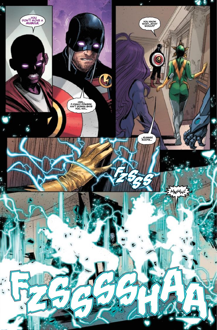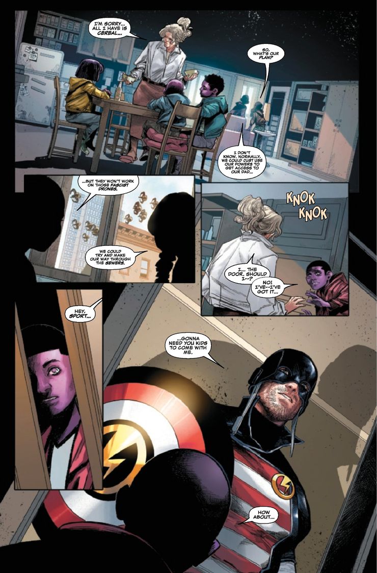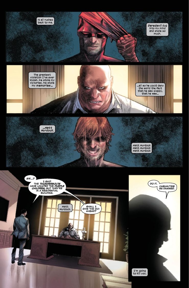 Walker es el primero en entrar, esperando que los Niños Púrpura usen sus poderes con él. Muestra una fortaleza y un poder mental notables al resistir sus órdenes, actuando esencialmente como cebo mientras Electro elimina a todos en el apartamento con sus poderes eléctricos. La misión de Thunderbolt, sin embargo, todavía no es un éxito, ya que al salir se enfrentan a Jessica Jones y los campeones que intentan liberar a los Niños Púrpura. Será interesante ver cómo se desarrollará esta confrontación, ya que USAgent necesita mantener su tapadera si quiere recopilar pruebas suficientes para que el FBI incrimine a Kingpin.