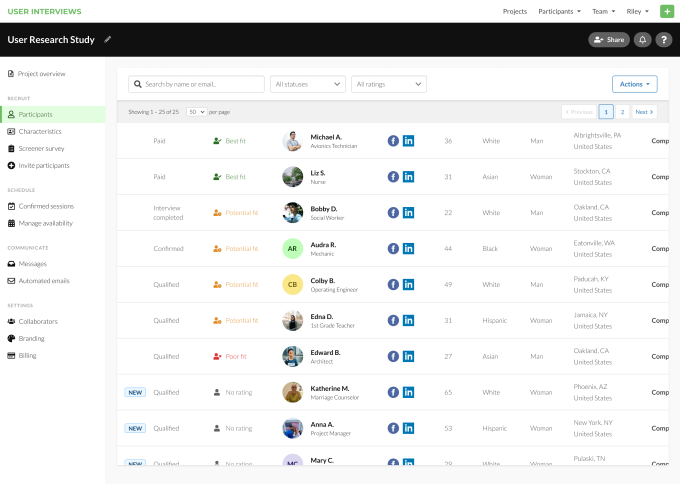 El producto se convirtió en Recruit y se ejecutó en un modelo a la carta. Para complementar Recruit, el equipo también lanzó Research Hub, que es un CRM y una herramienta de reclutamiento para que los equipos de investigación administren sus paneles. Para ser claros, User Interviews no ejecuta las encuestas o las pruebas A / B en sí mismas, sino que ayuda a las empresas a administrar a los participantes y. logística para esos estudios.