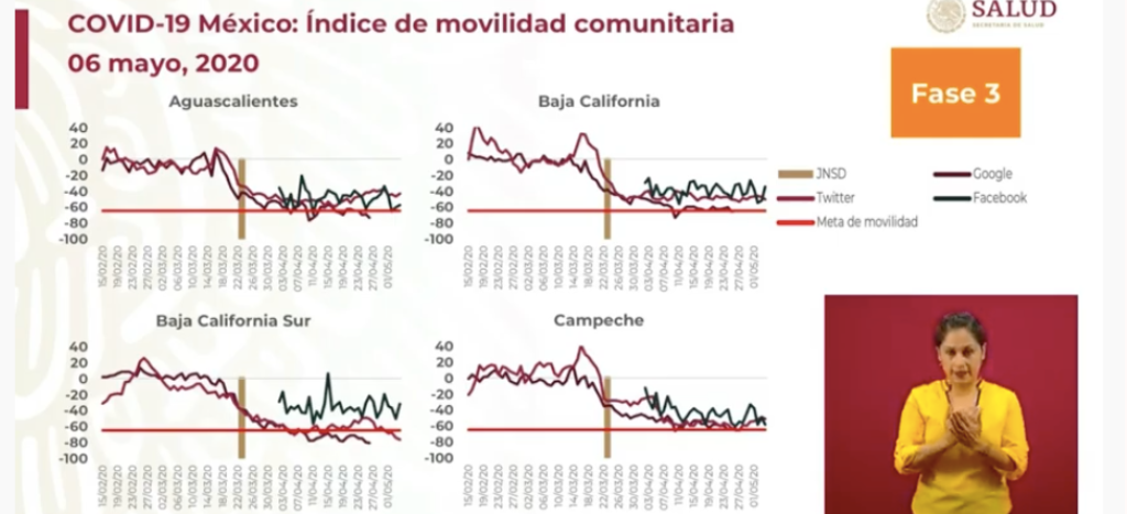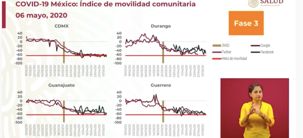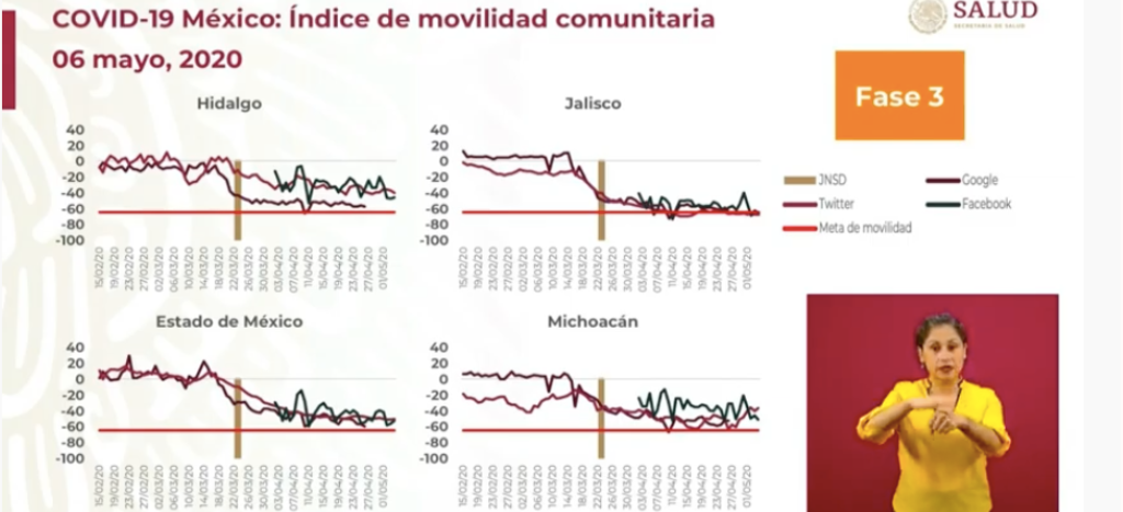 El Índice de Movilidad Comunitaria se mide a través de Google, Facebook y Twitter; de esta forma, se monitorean a los estados para determinar si llegan a la meta de un 65 por ciento de movilidad en la entidad.