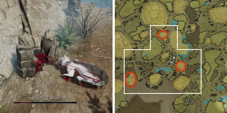 Por lo tanto, el Lobo Alfa solo deambulará por las carreteras que conectan las tres Guaridas de Lobos de Farbane Woods en V ascendente. Juntos, estos puntos de referencia forman una especie de triángulo en el mapa, con la salida del pasaje de la cueva de Dunley Farmlands como su centro. Para encontrar exactamente dónde está Alpha Wolf, los aventureros vampiros deben usar Blood Altar, una estructura de castillo que rastrea a los jefes y que está disponible durante la línea de misiones del diario de la campaña principal.