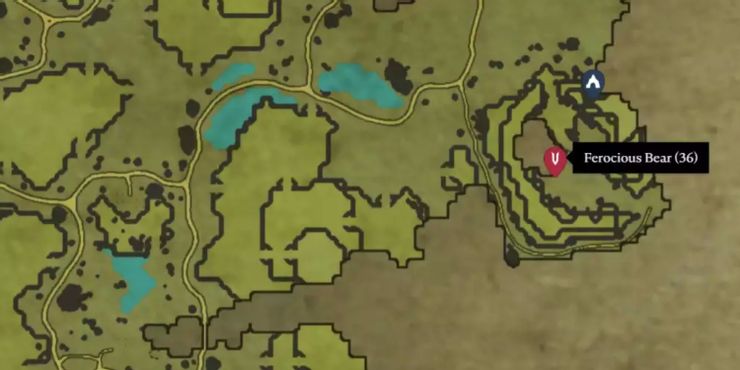 Para encontrar el oso feroz, los jugadores deberán dirigirse hacia el este para encontrar el área de Farbane Woods. Allí, al este, encontrarán la Cueva del Oso en la que se encuentra el jefe. El oso feroz es un jefe de nivel 36 que recompensará a los jugadores con el poderoso poder vampírico Forma de oso en V levantandogramo, y la estructura Fur Rugs al ser derrotados. Bear Form mejora la velocidad y la resistencia física de un personaje y también otorgará una mayor regeneración de salud y la capacidad de romper objetos que de otro modo serían insuperables.