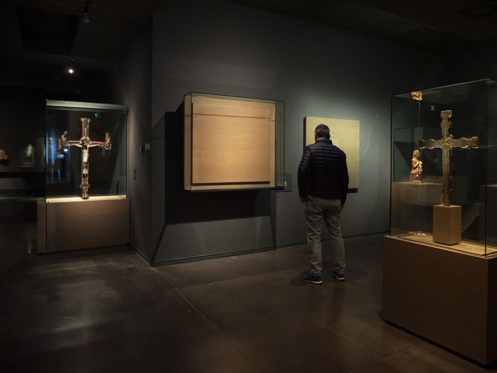 Este martes, el silencio que reina en este museo que visitan unas 25.000 personas al año, se veía interrumpido por las voces apagadas de un grupo de escolares de cinco o seis años y por los medios de comunicación que buscaban los vacíos dejados por las 15 obras que hasta el domingo se exponían y que ahora están a punto de emprender un viaje a un destino donde no han estado nunca. Son obras de los siglos XII al XVII como los frontales de altar de San Vicente de Treserra y el de San Hilario de Buira, de donde es también una impresionante arqueta, el calvario de Tamarite de Litera, un retablo de San Cristóbal de Santaliestra, un bol de Benavente, así como dos piezas que llevaban más de 60 años en el culto de la iglesia de San Lorenzo, pegada al museo: las esculturas de San Miguel y de la Virgen María de Zaidín que los que fueron a misa el domingo por la mañana todavía pudieron rezar ante ellas.