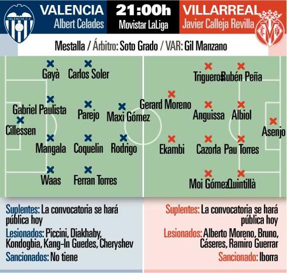 Valencia y Villarreal se enfrenta este sábado en un duelo autonómico de la Comunitat Valenciana en el que ambos equipos necesitan enmendar sus tropiezos y reencontrarse a sí mismos con un triunfo que les acerque a los puestos europeos tras sus derrotas de la última jornada. Mientras el Valencia no ha conseguido mostrar la regularidad necesaria para estar entre los cuatro primeros de la tabla, el Villarreal atraviesa una mala racha con cuatro jornadas sin ganar.