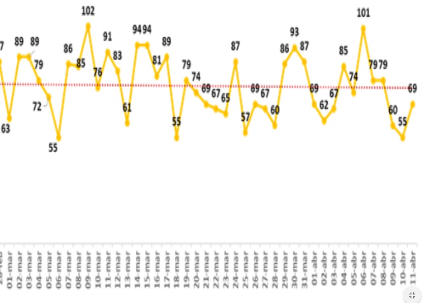 Y de marzo hasta el 11 de abril las cifras no reflejan que se tenga “controlada” la situación -como dijo López Obrador- pues el número de ejecuciones no se ha reducido aunque hay días que bajan del promedio de crímenes diarios (90 por día).