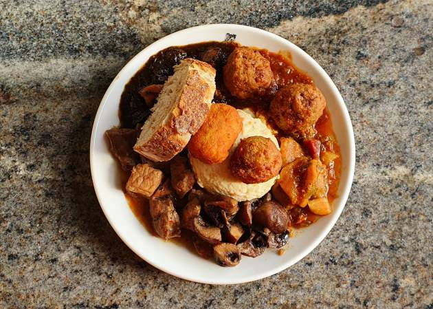 “Una de las más habituales es que los callos sean de lata. Hay que huir de eso y de los locales que preparan el frito con todos los ingredientes mezclados y no cocinándolos uno a uno” aclara Piña. Hay quienes componen un plato equilibrando las salsas con los fritos o las carnes con los pescados y las verduras y quienes directamente escogen lo que les parece en ese momento. Lo único claro es que no hay reglas establecidas. El variat siempre se exprime al máximo con unas buenas rebanadas de pan moreno mallorquín, de miga compacta y contundente, y unas olives trencades, aceitunas partidas típicas de la isla aliñadas con hinojo y guindilla.