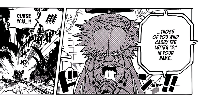 Durante los momentos finales del capítulo #1117, el mensaje de Vegapunk comenzó a hablar sobre el secreto detrás de la Voluntad de D. Mencionó un secreto que se esconde entre aquellos con una D en su nombre, como el protagonista Monkey D. Luffy. Justo antes de que este enigma pudiera resolverse, uno de los Cinco Ancianos arrojó al Gigante de Hierro al mar. Si no fuera por esta interrupción, aquellos que poseen la Voluntad de D habrían obtenido conocimiento que el Gobierno Mundial quiere desesperadamente mantener oculto. Esto les habría dado una ventaja en la inevitable batalla entre las facciones.