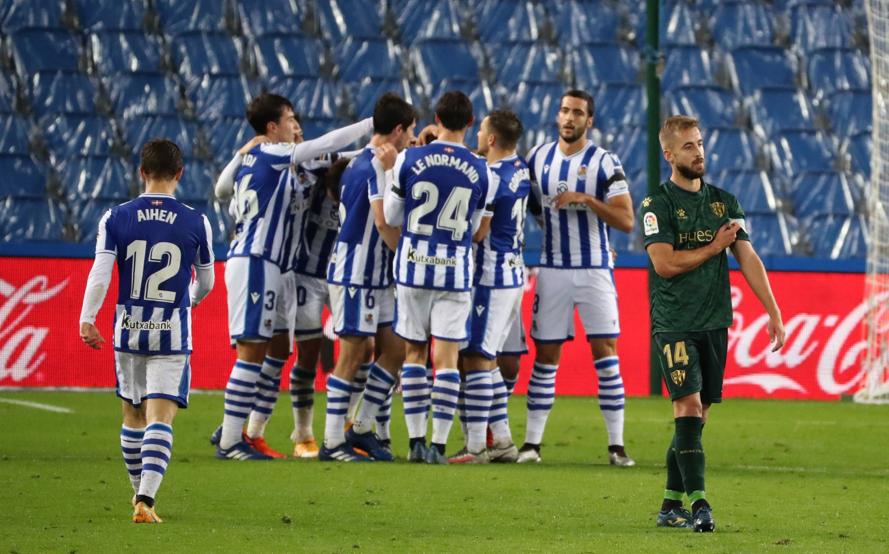 Real Sociedad, 4: Remiro; Gorosabel, Elustondo, Le Normand, Aihen; Zubimendi, Guridi (Merino, m. 62), Silva (Sagnan, m. 75); Portu (Bautista, m. 75), Willian José (Isak, m. 62) y Oyarzabal (Roberto López, m. 75).