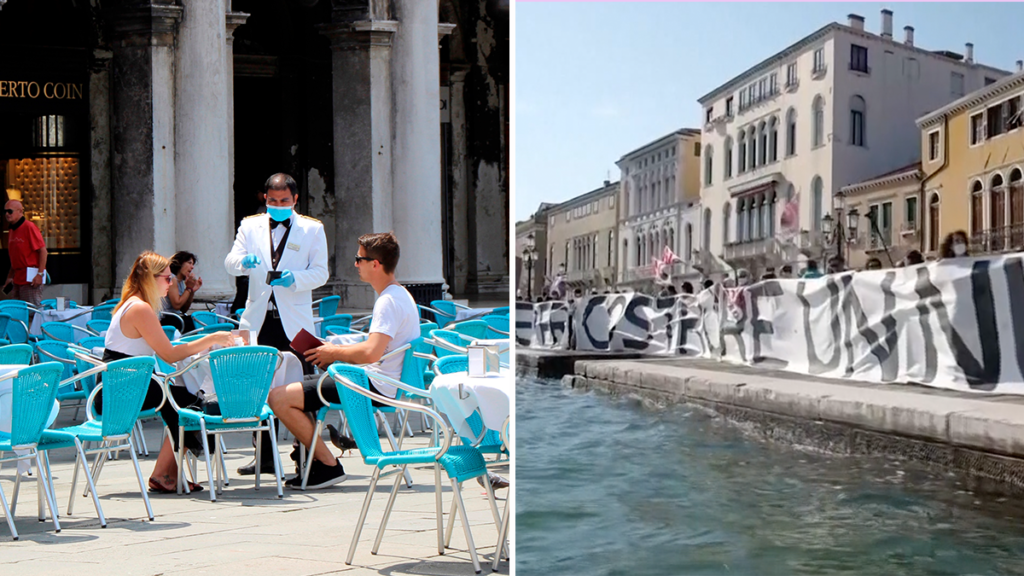 Venecia: residentes forman cadena humana en contra del turismo de masas tras pandemia