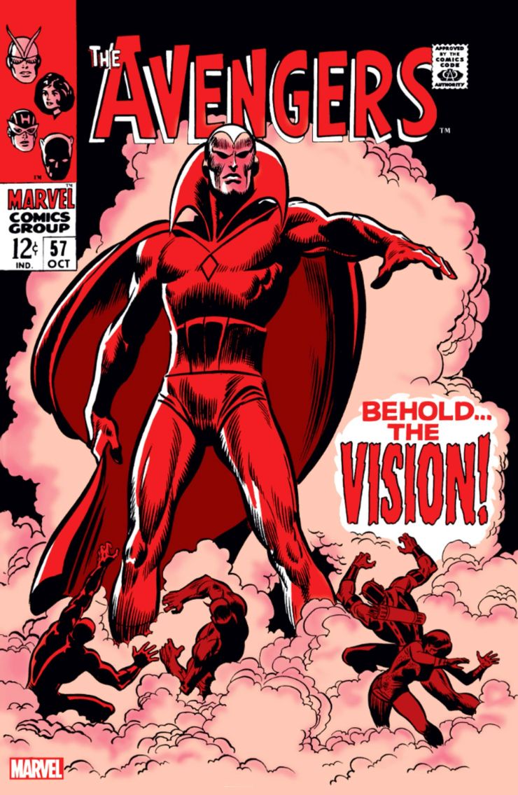 La Visión se presentó como una amenaza en su primer número, y la portada de Vengadores número 57 lo retrata como tal. Una Visión completamente roja y cubierta de humo se eleva sobre el equipo mientras intentaban desesperadamente combatirlo. Si bien demuestra que es un aliado al final, la portada implica que está destinado a ser un enemigo mortal.