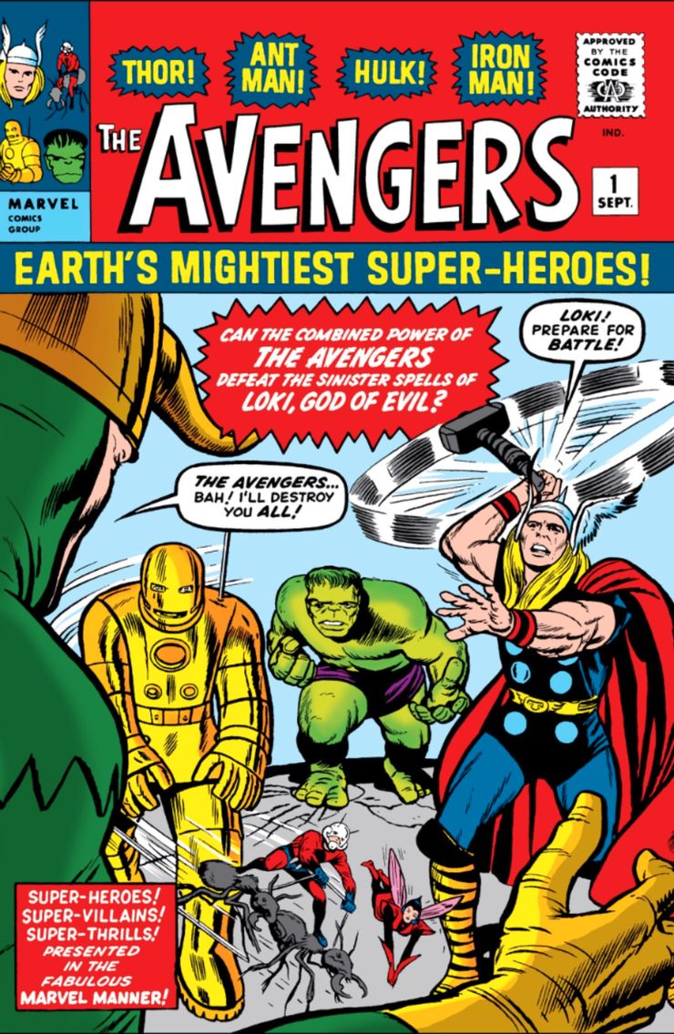 El primer cómic que presentaba a Los Vengadores se lanzó en 1963. La portada presenta a un grupo de personajes ya establecidos que se unen para enfrentar una amenaza común. Los crossovers de cómics ya habían existido, pero tantos personajes que se unían para formar un equipo era un concepto nuevo.