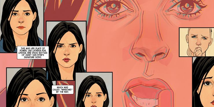 De hecho, este no es el primer anuncio de perfume que se ha visto a Janet vendiendo. En el cómic especial de 2019 Golpes de temporada Escrito por Jason Latour e ilustrado por Greg Hinkle, Van Dyne Perfume hace cameos frecuentes con Spider-Man. Spider-Man se sienta en un edificio que tiene un letrero de perfume Van Dyne e incluso intenta comprar uno de los aromas anunciados antes de detener un robo en esa misma tienda. Desafortunadamente, sus habilidades de marketing no son por las que se conoce a Janet; Wasp es más conocida por el abuso que sufrió por parte de Hank. Esto significa que todos sus logros heroicos y su carrera con los Vengadores se pasan por alto por completo a favor de que ella sea relegada a “víctima” en lugar de “héroe”.