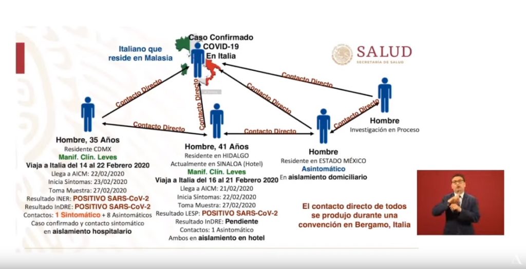 Todo esto parece estar relacionado con un caso de una persona de nacionalidad mexicana que se encuentra en Bérgamo, Italia, que es el sitio donde estuvieron en la tercera semana de febrero y donde muy probablemente ocurrieron los contagios”, subrayó.