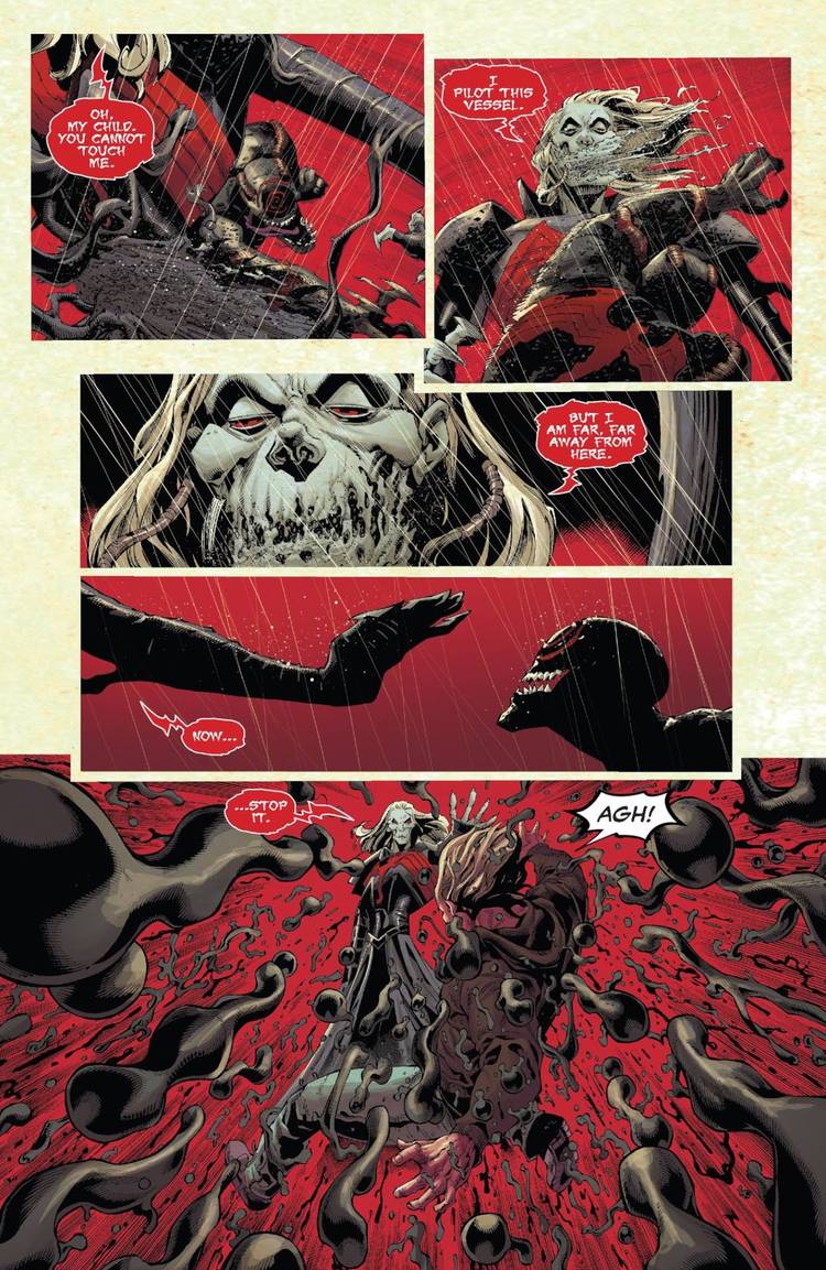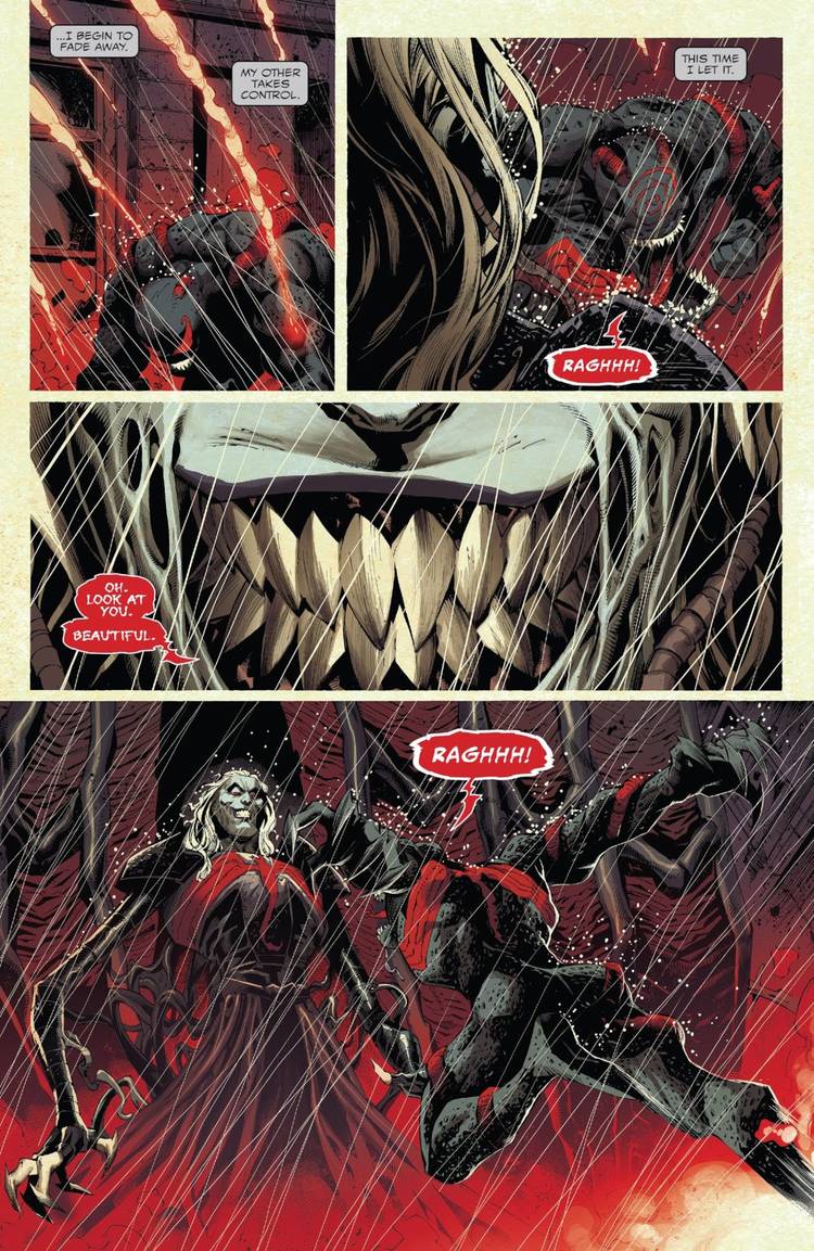 Veneno El número 3, de Donny Cates, Ryan Stegman, JP Mayer, Frank Martin y Clayton Cowles, presentó la humillación de Venom a manos de Knull, el antiguo dios de la oscuridad conocido como el Rey de Negro, creador de todos los simbiontes. Naturalmente, esto también le dio a Knull poder sobre los simbiontes, permitiéndole comandarlos y controlarlos. Esto hizo que luchar contra él fuera muy difícil, como descubrió Eddie Brock.
