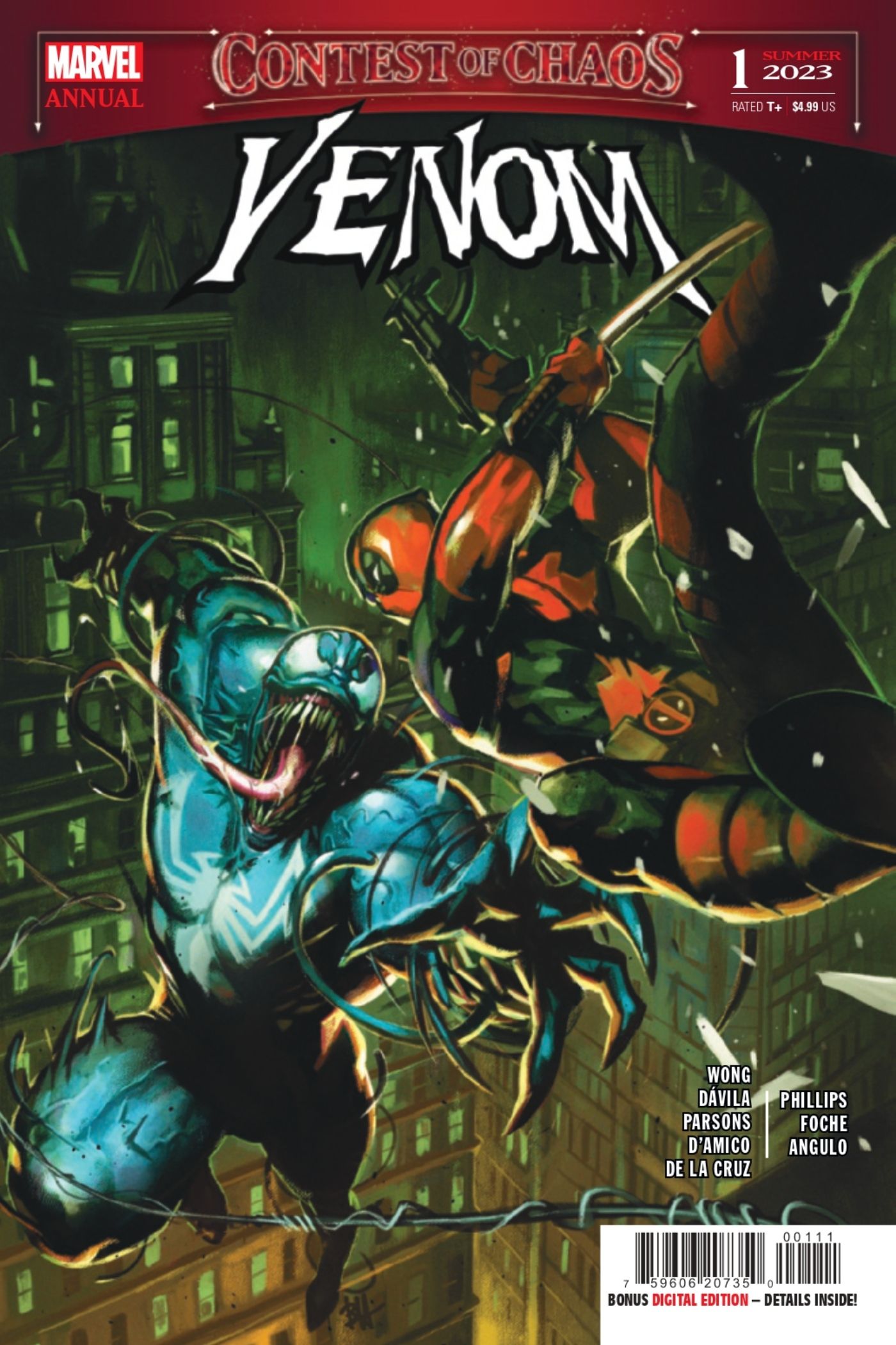 En un adelanto de Veneno Anual 2023 #1 de Alyssa Wong y Sergio Dávila, Deadpool y Venom se encuentran teletransportados a un carnaval en el paseo marítimo llamado Hopper Land UK, y la mascota, Hopper, es aparentemente un conejo animatrónico inteligente y el guardián del mencionado ‘Hopper de edición limitada’. Mientras Deadpool está pasando el mejor momento de su vida, Venom (usado por Dylan Brock) no podría estar más molesto, ya que buscaban al padre de Dylan, Eddie, antes de que los llevaran a este extraño lugar. Sin embargo, con Hopper, que modifica la realidad, podrían encontrar a Eddie en un instante. Mientras tanto, Deadpool solo quiere el Hopper para tener acceso ilimitado a todas las ubicaciones de Hopper Land en todo el mundo, lo cual, para Deadpool, es tan serio como la necesidad de Venom de tener el poderoso artefacto.