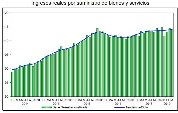 En su comparación mensual, en las empresas comerciales al por mayor los ingresos reales por suministro de bienes y servicios aumentaron 0.1 por ciento y el personal ocupado total subió 0.3 por ciento  en el tercer mes de 2019 respecto al mes precedente, en tanto que las remuneraciones medias reales pagadas descendieron 2.2 por ciento.