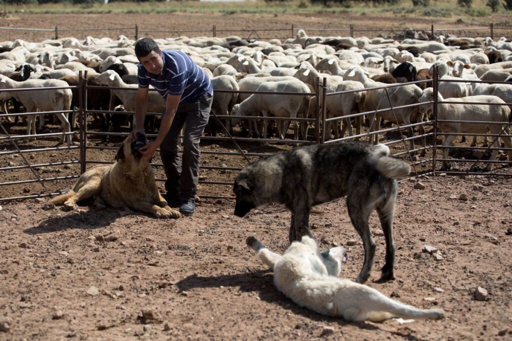 Con el lobo al acecho, los mastines se han convertido en imprescindibles para el manejo del rebaño de 650 ovejas. No los usan con las vacas en extensivo porque es más complicado enseñarles. Javier cuenta con cinco ejemplares, que se acercan a saludar cuando oyen el coche. De tan grandes imponen, pero no dan muestras de ninguna agresividad. Al rato, se retiran a sestear junto al rebaño. “No hay ningún problema si no haces nada al ganado y si están bien educados”, explica. No se separan de las ovejas ni por la noche, cuando se guarda al rebaño en un redil. Él y su padre las pastorean. El sistema ha funcionado y solo tuvieron un susto en 2010 cuando un lobo agarró a una oveja por el cuello. “Mi padre lo vio y el animal se asustó y la soltó”, relata. Aconseja a los excursionistas que si se topan con un rebaño tengan cuidado. Con los mastines en el campo lo mejor es no dirigirse hacia el ganado, sino rodearlo, y tampoco interactuar con ellos. Si se lleva perro, que vaya atado.