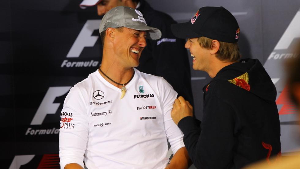 el pasado fin de semana en el GP de Eifel de Fórmula 1, muchos tratan de comparar al inglés con Michael Schumacher. ‘¿Quién es mejor piloto?’, se preguntan muchos. Esta cuestión no tiene una respuesta concreta, puesto que es difícil comparar a dos pilotos sinónimos de dominio en dos épocas muy diferentes, con coches con un rendimiento muy desigual. Por ello, todas las opiniones que han surgido a raíz de este debate están fundamentadas en las sensaciones. Y en el caso de Sebastian Vettel, estaba claro que se decantaría por el que siempre ha sido su ídolo, Michael Schumacher.