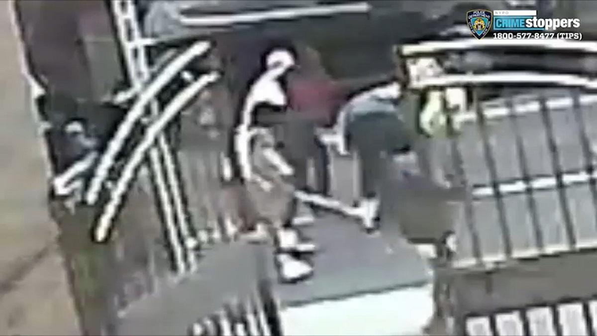 El video de vigilancia muestra a la mujer luchando por aferrarse a su bastón en la calle 169 mientras el grupo aparentemente intenta robarlo. El grupo parece empujar a la mujer hacia el suelo durante el ataque y, mientras estaba aturdida y de rodillas.