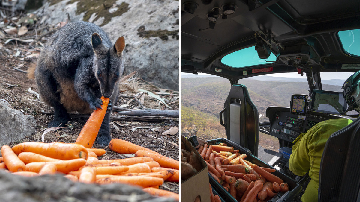 En la última semana, el gobierno de Nueva Gales del Sur ha desplegado helicópteros para lanzar más de dos toneladas de zanahorias y boniatos en diferentes puntos donde habita el ualabí, un marsupial endémico del sureste de Australia.