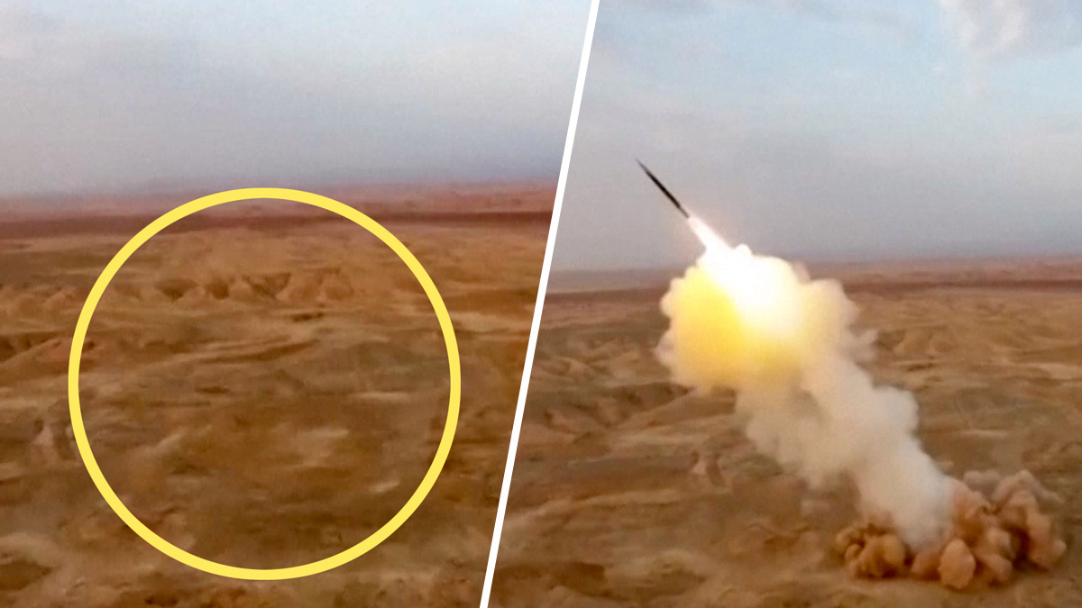 Imágenes grabadas con drones por la Guardia mostraban dos misiles saliendo de posiciones ocultas en lo que parecía ser una llanura desértica en el centro de Irán.