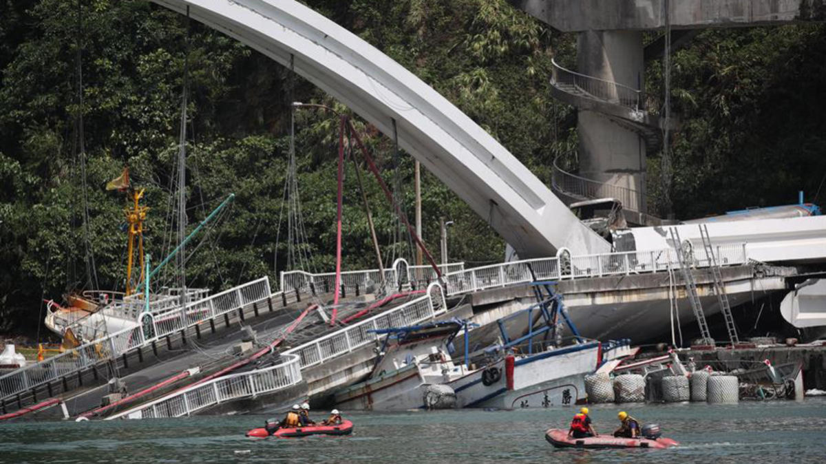 Hacía sol en el momento del derrumbe, horas después de que un tifón se abatiera sobre parte de la isla. Los equipos de emergencias no aclararon si la tormenta había debilitado el puente ni apuntaron a otra posible causa. La Central News Agency, gestionada por el gobierno, dijo que uno de los pilares del puente podría haberse derrumbado.