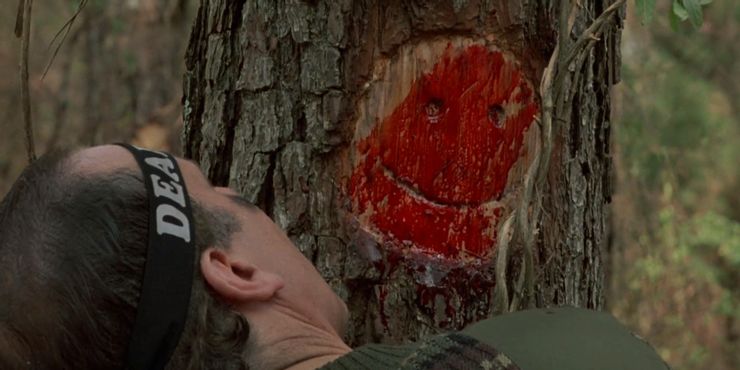 Sin embargo, inmediatamente se convierte en uno de los peores. Viernes 13 mata cuando la cara del jugador de paintball crea una carita sonriente de dibujos animados perfecta tallada en el árbol. Incluso para Viernes 13 estándares, es demasiado tonto y se siente más como un Looney Tunes parodia de la serie.